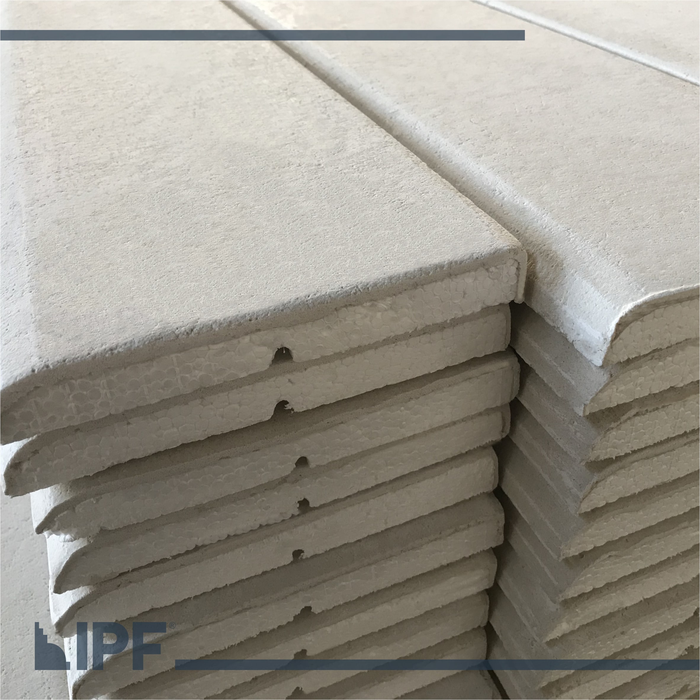 Moldura com base em EPS (isopor) revestida com a massa acrílica flexível exclusiva da IPF, são peças resistentes ao tempo e a propagação de fogo, próprias para ambientes externos e internos.