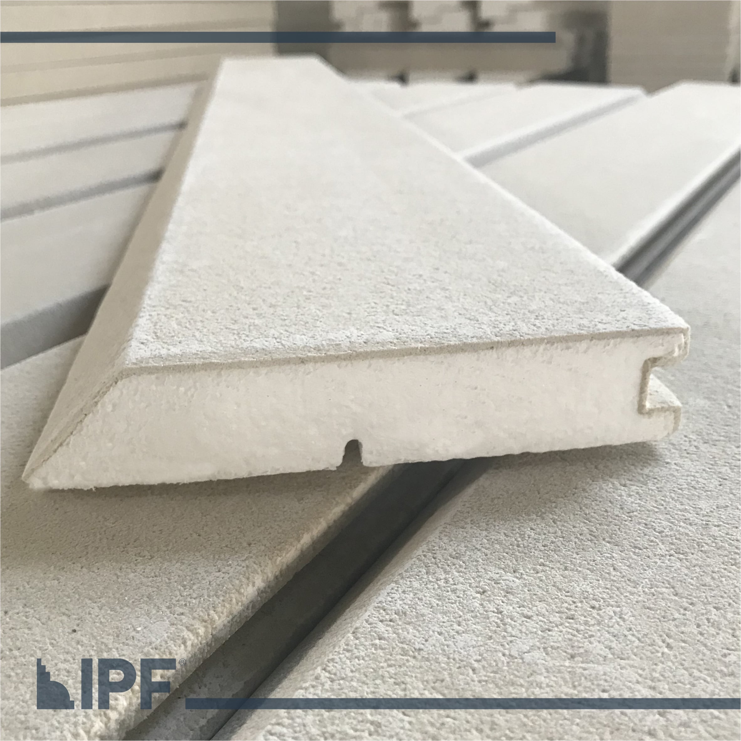 Moldura com base em EPS (isopor) revestida com a massa acrílica flexível exclusiva da IPF, são peças resistentes ao tempo e a propagação de fogo, próprias para ambientes externos e internos.