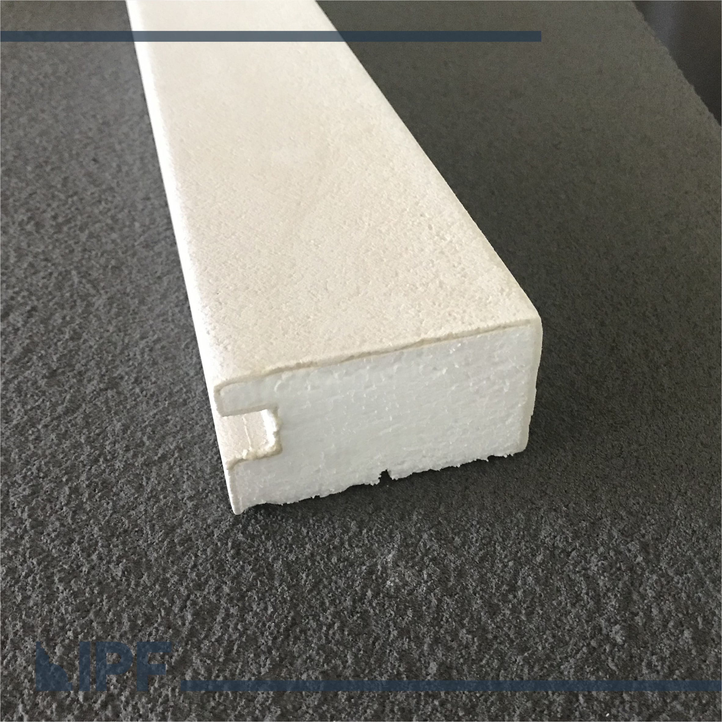 Moldura com base em EPS (isopor) revestida com a massa acrílica flexível exclusiva da IPF, são peças resistentes ao tempo e a propagação de fogo, próprias para ambientes externos e internos.