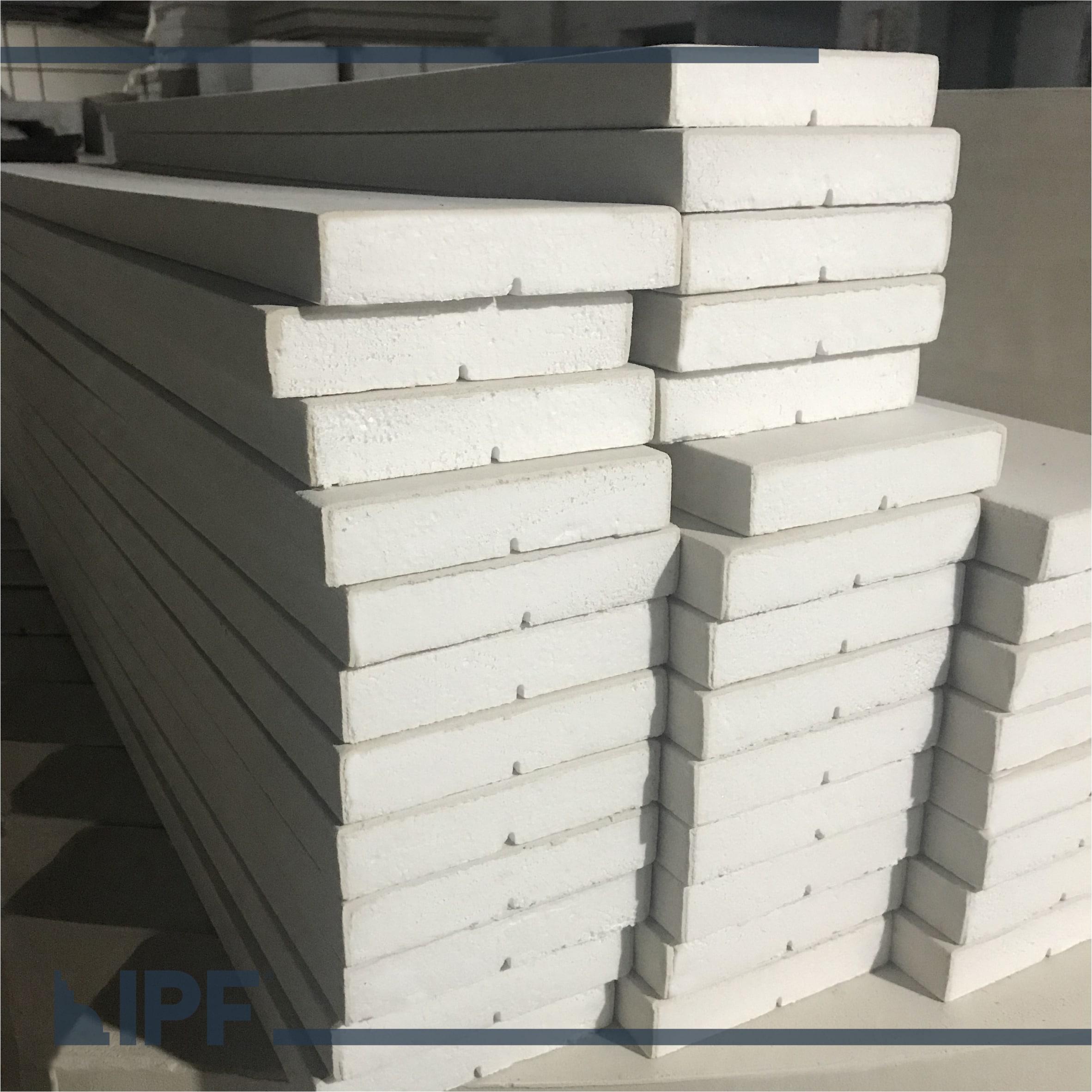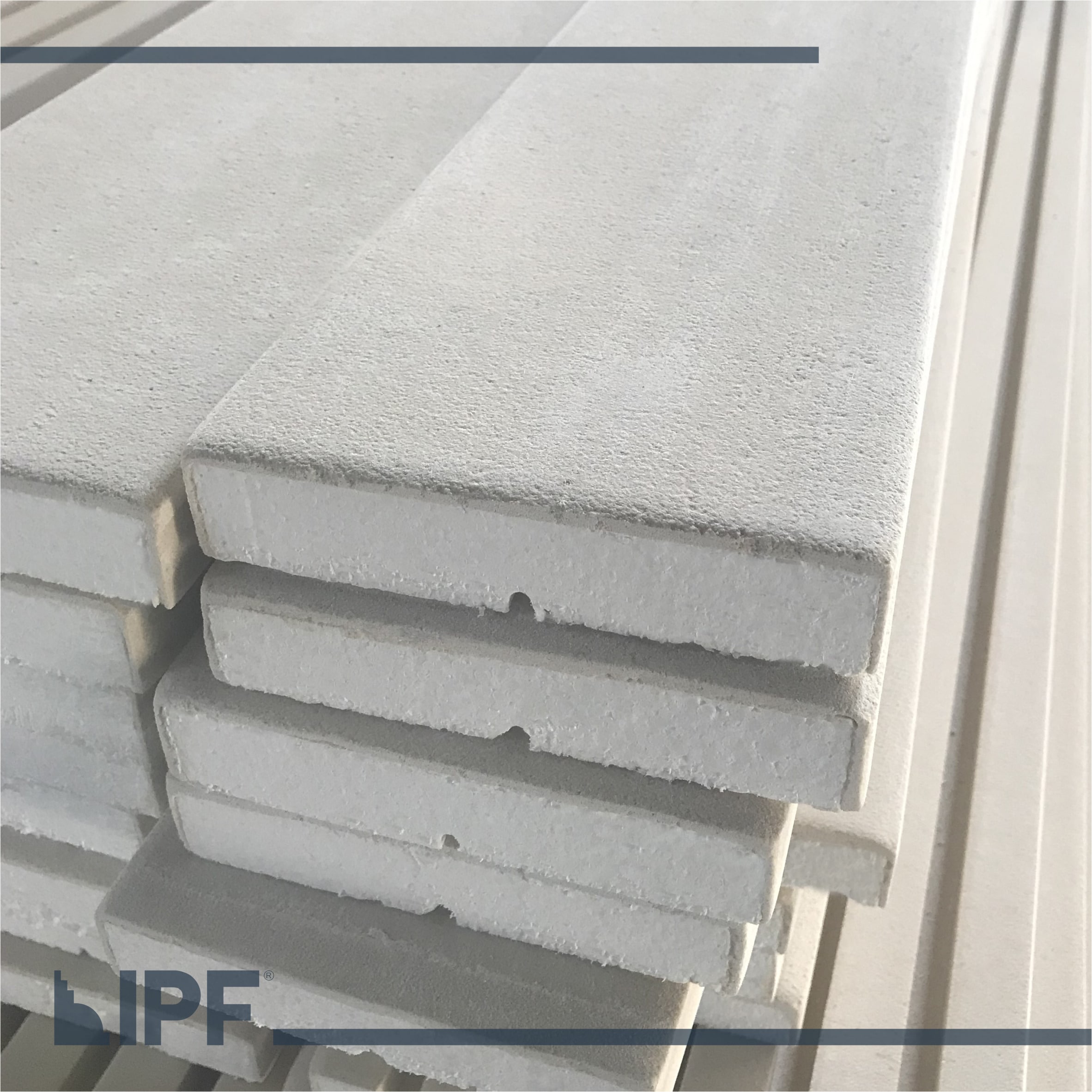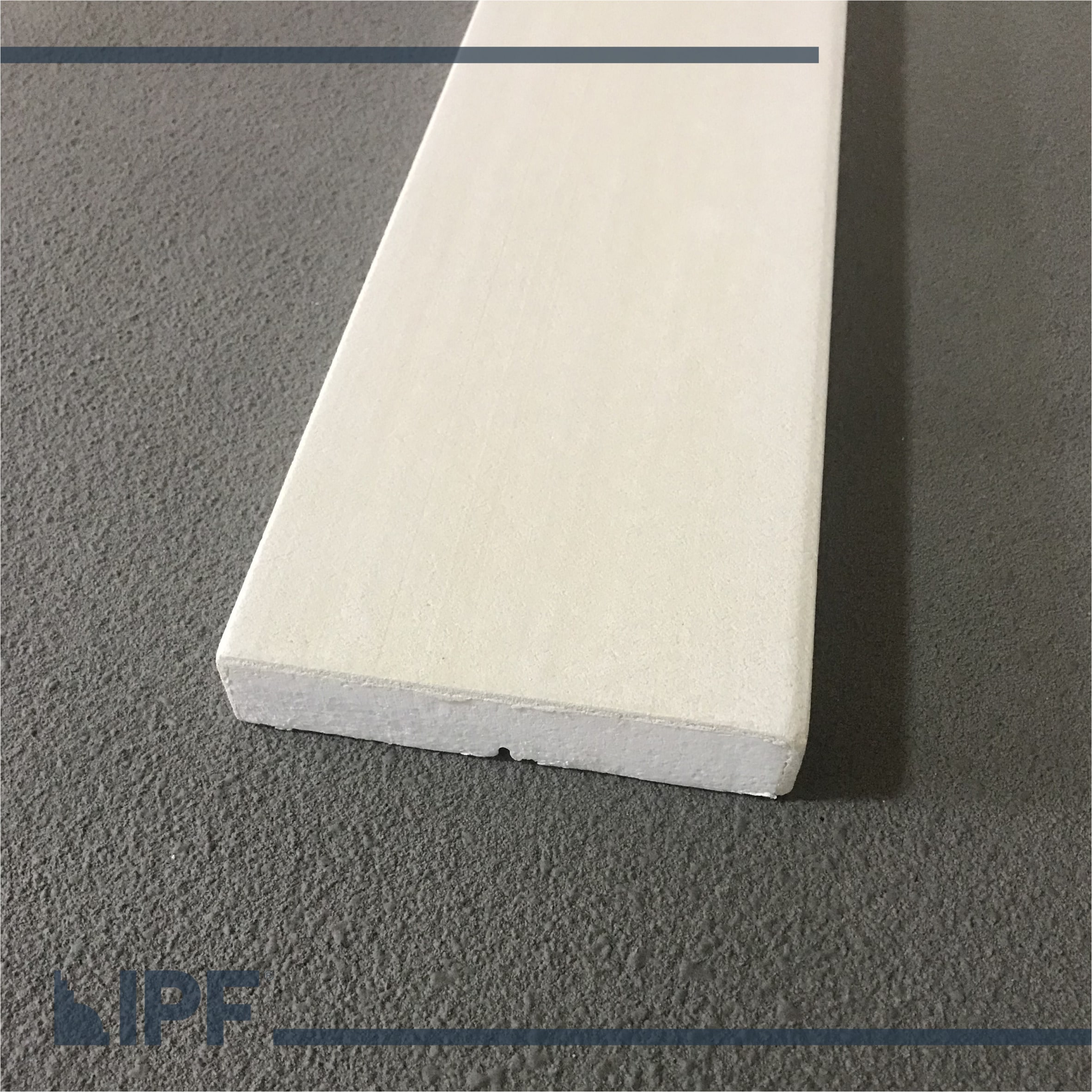 Moldura com base em EPS (isopor) revestida com a massa acrílica flexível exclusiva da IPF, são peças resistentes ao tempo e a propagação de fogo, próprias para ambientes externos e internos.
