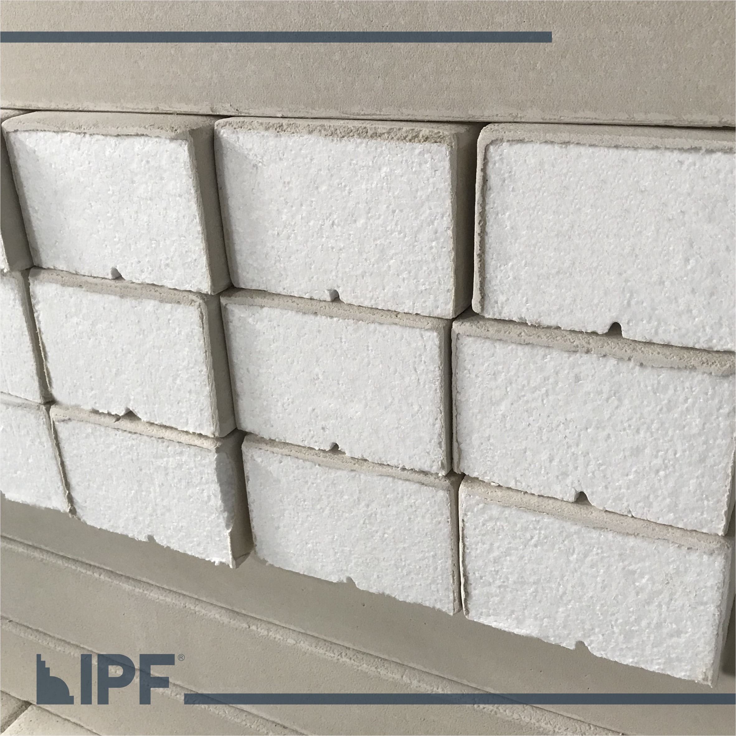 Moldura com base em EPS (isopor) revestida com a massa acrílica flexível exclusiva da IPF, são peças resistentes ao tempo e a propagação de fogo, próprias para ambientes externos e internos.