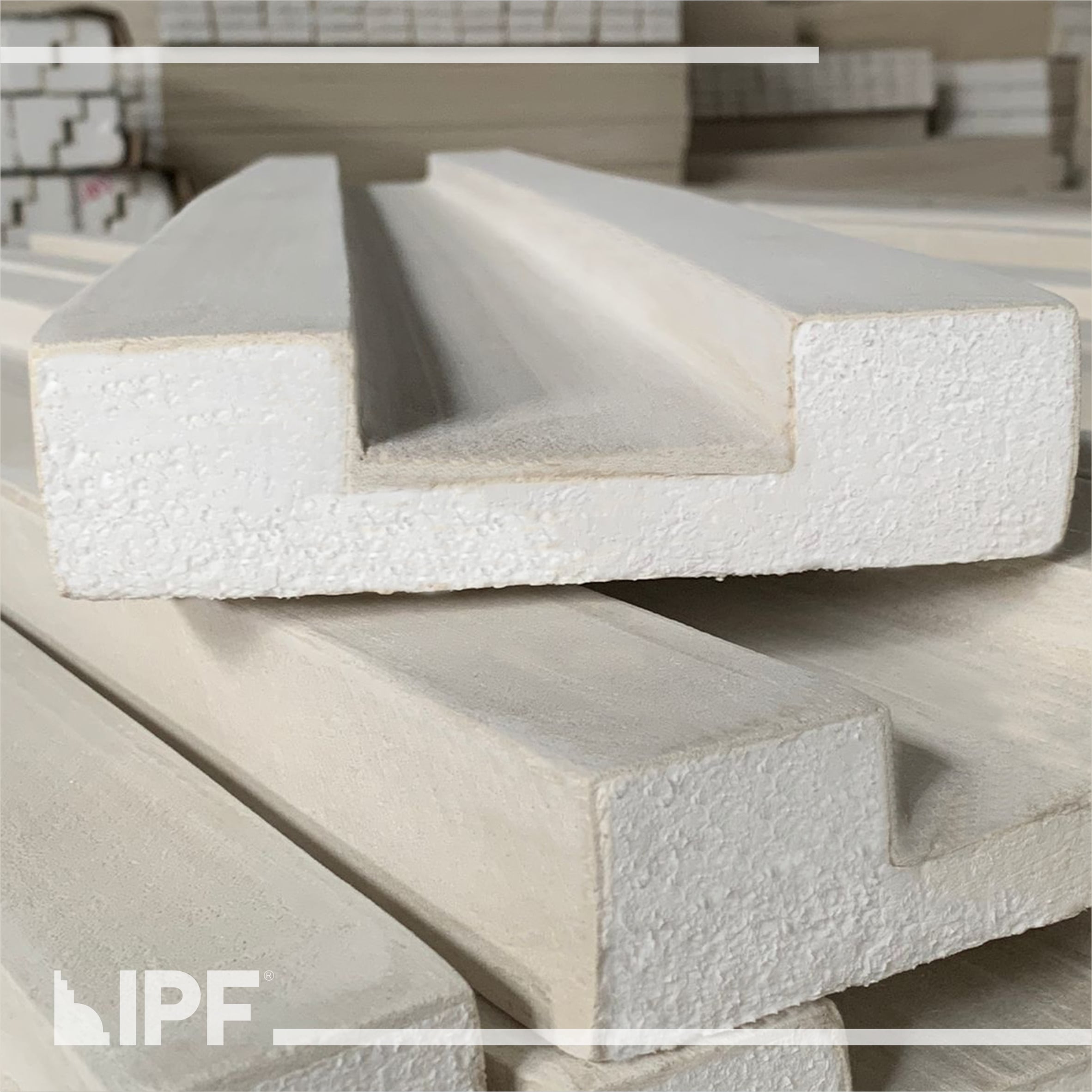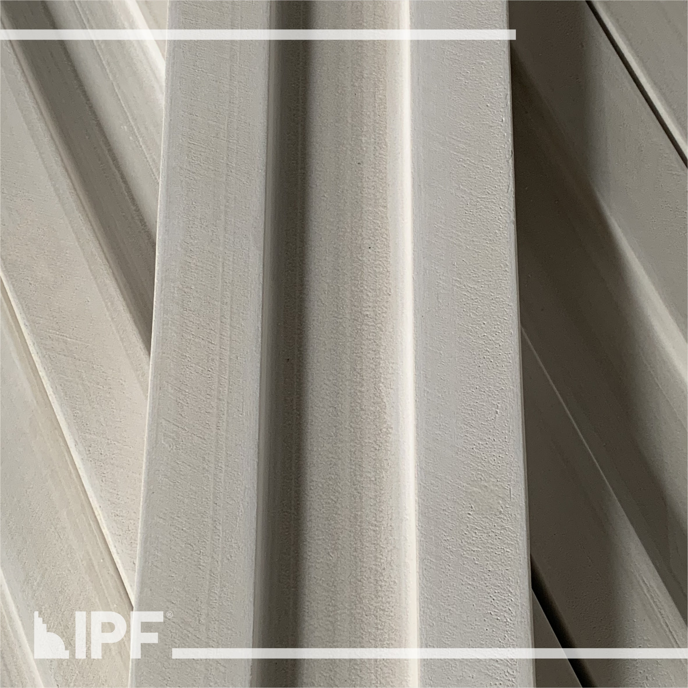 Moldura com base em EPS (isopor) revestida com a massa acrílica flexível exclusiva da IPF, são peças resistentes ao tempo e a propagação de fogo, próprias para ambientes externos e internos.