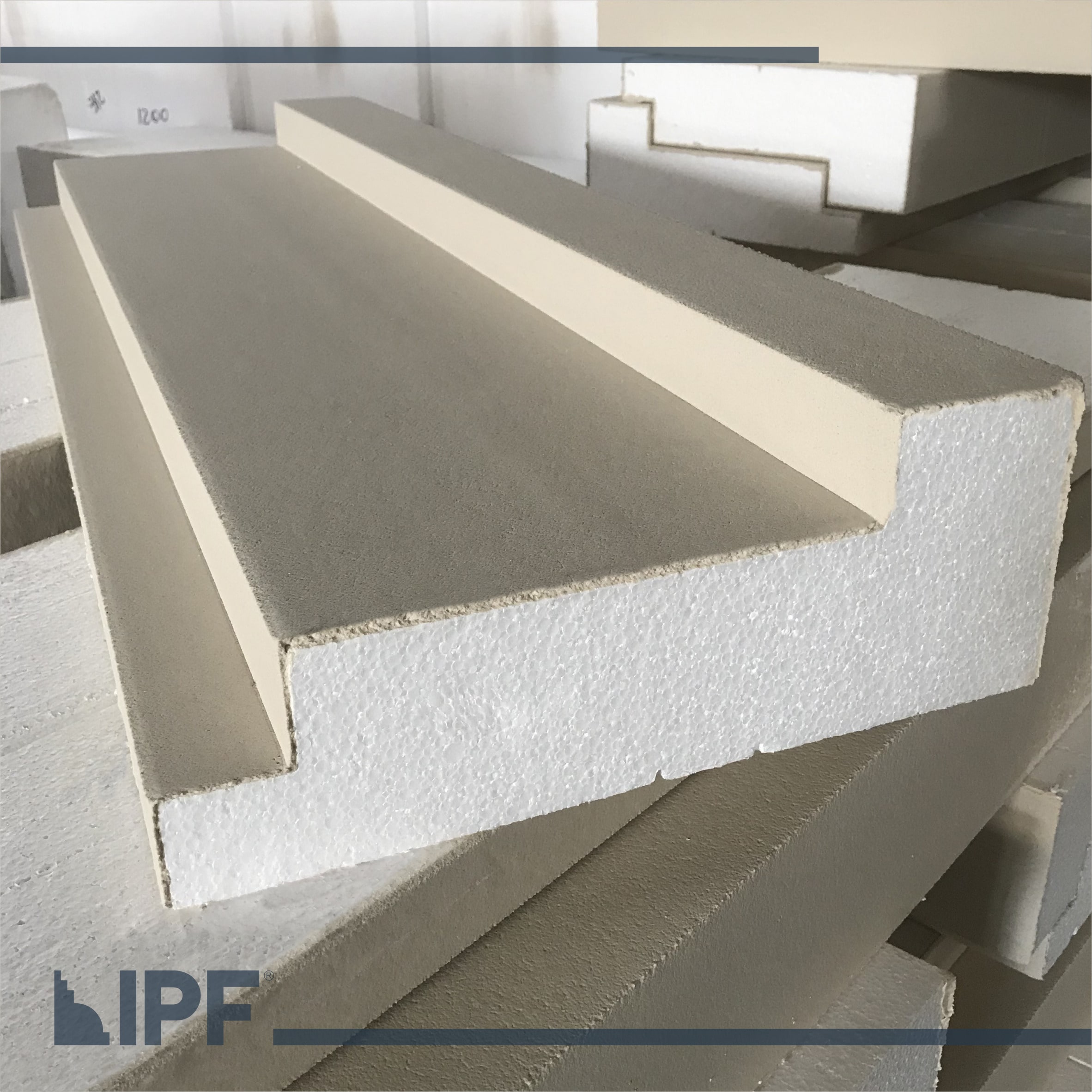 Moldura com base em EPS (isopor) revestida com a massa acrílica flexível exclusiva da IPF, são peças resistentes ao tempo e a propagação de fogo, próprias para ambientes externos e internos.