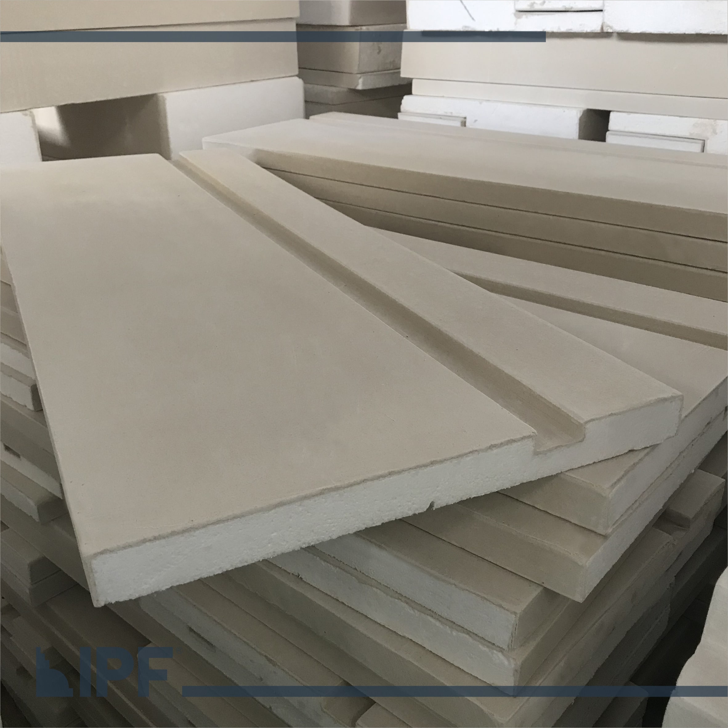 Moldura com base em EPS (isopor) revestida com a massa acrílica flexível exclusiva da IPF, são peças resistentes ao tempo e a propagação de fogo, próprias para ambientes externos e internos.