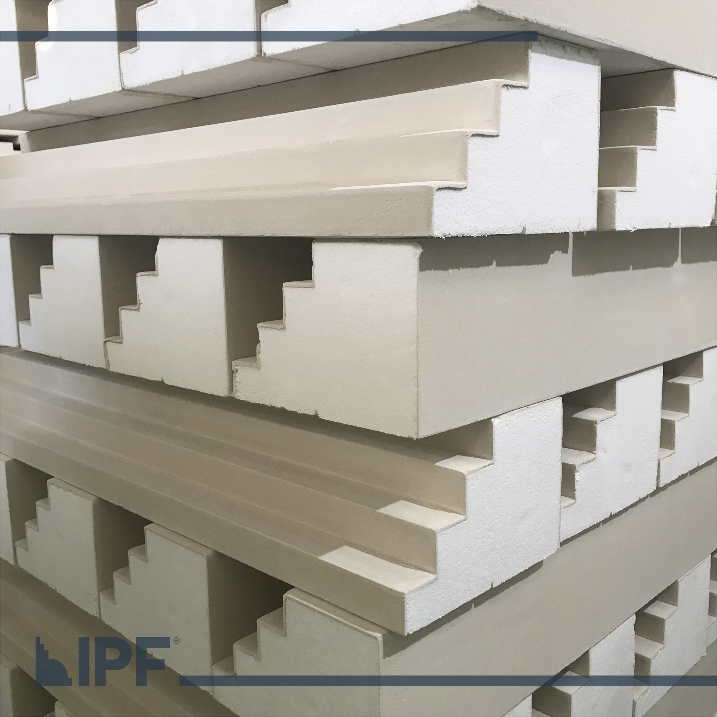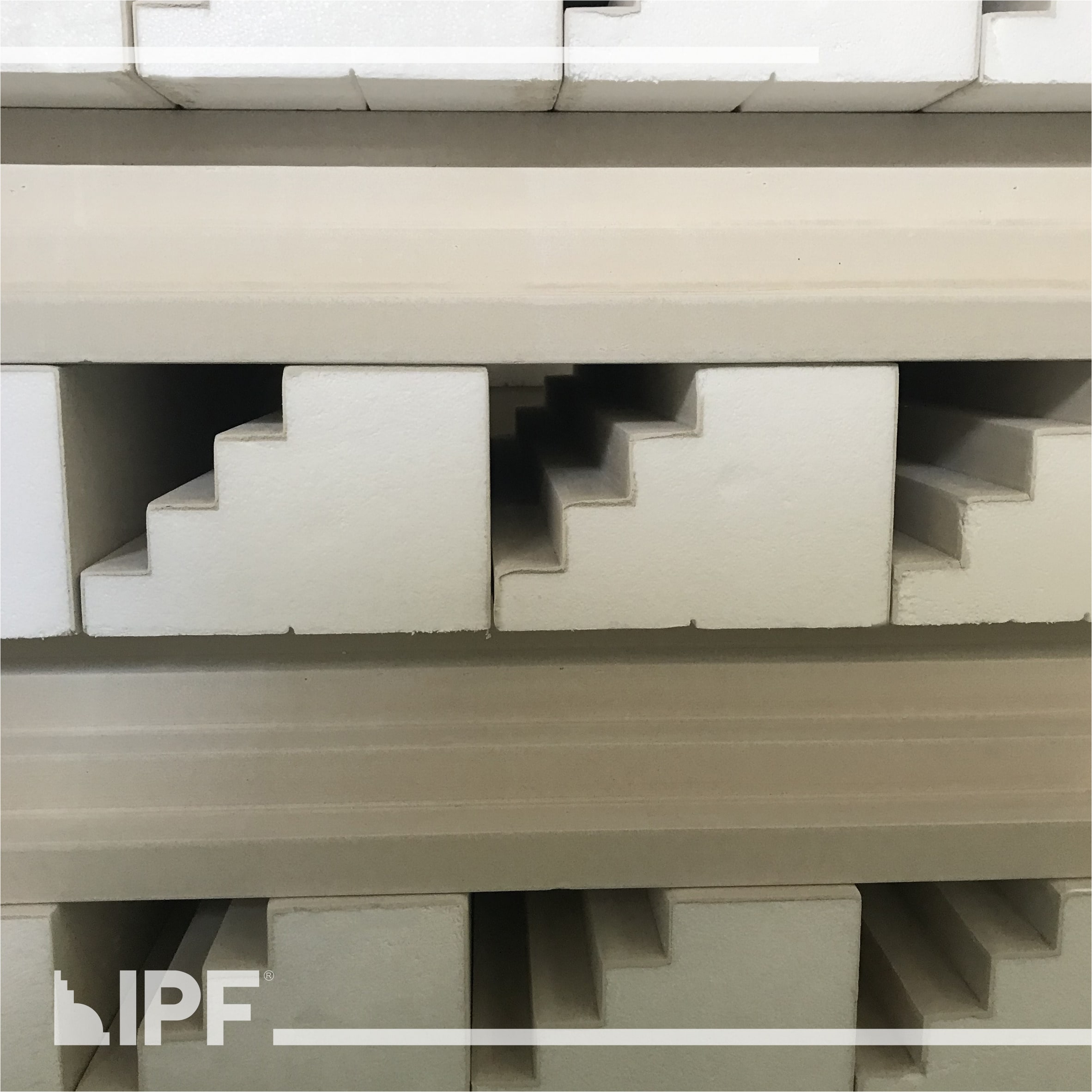 Moldura com base em EPS (isopor) revestida com a massa acrílica flexível exclusiva da IPF, são peças resistentes ao tempo e a propagação de fogo, próprias para ambientes externos e internos.